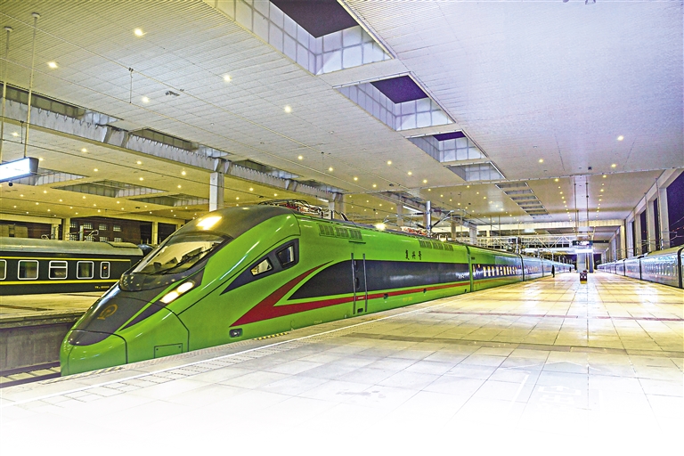 春運(yùn)首日,“復(fù)興號(hào)”緩緩駛出拉薩火車(chē)站。記者 丹增群培 攝