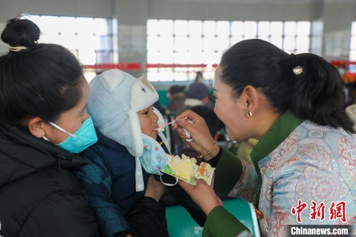 春運首日,拉薩車務(wù)段在日喀則站候車大廳開展“溫馨出行 文明出行”主題活動,火車站青年職工帶來了日喀則當(dāng)?shù)靥厣顝棾?,并為旅客送上溫暖的甜茶,和旅客一起分享蛋糕慶祝日喀則站第十個春運等活動,營造出喜迎新春的節(jié)日氛圍。