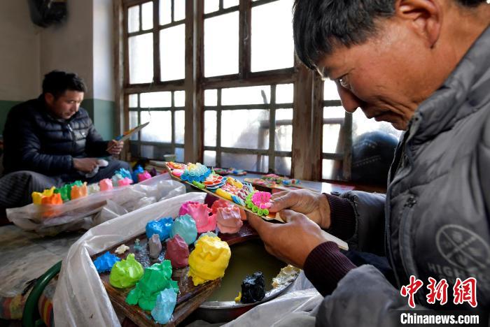 雙手被冷水泡得紅腫、雙腳一直盤腿而坐……制作過程固然辛苦,卻也讓米瑪一家收入頗豐?!爸谱?、售賣酥油花,每年人均有一萬元(人民幣,下同)左右的收入。這對于農(nóng)閑時的我們來說,還是很不錯的?!泵赚斦f,接下來他會教孫輩來制作酥油花,讓年輕一代慢慢學(xué)習(xí)了解、傳承這項(xiàng)技藝。