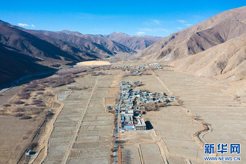 圖為鳥瞰昌嘎村(無人機(jī)照片,2月2日攝)。新華網(wǎng)發(fā) 李騰 攝
