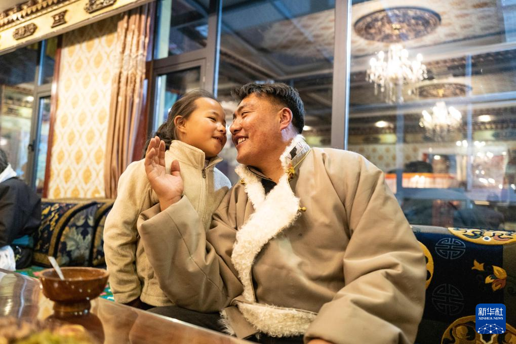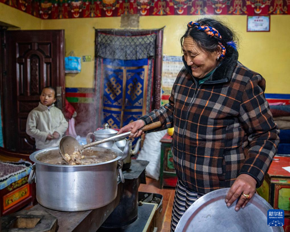 在西藏拉薩市當雄縣公塘鄉(xiāng)甲根村,整個村子沉浸在節(jié)日氣氛中。村里的斯曲旺姆老人家四世同堂,房屋寬敞明亮。手里捧著盛滿“古突”的木碗,斯曲旺姆老人希望這樣的幸福能長長久久。