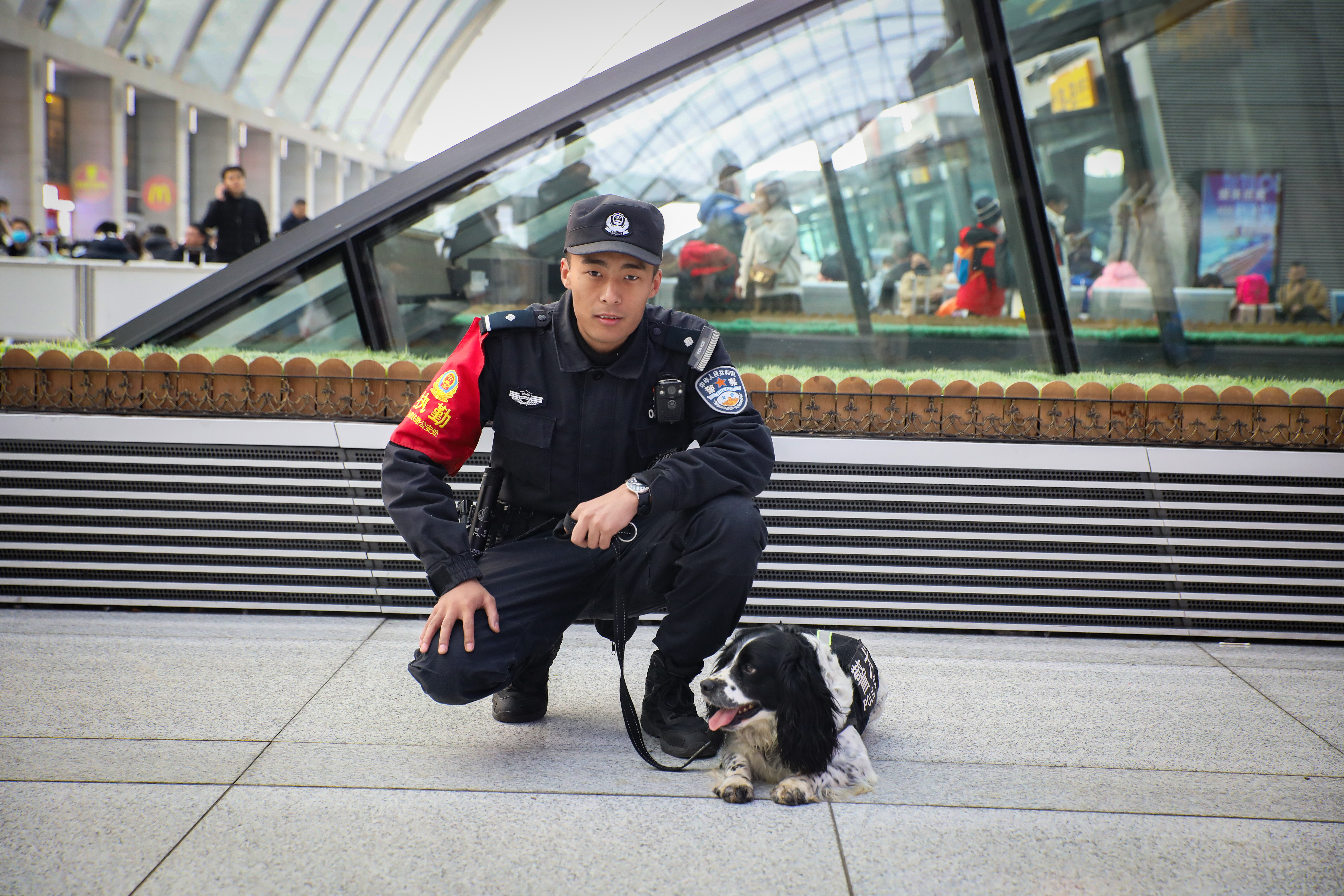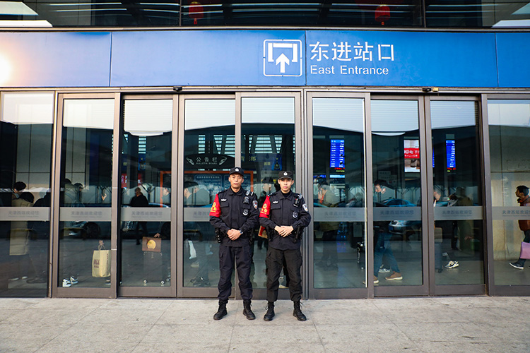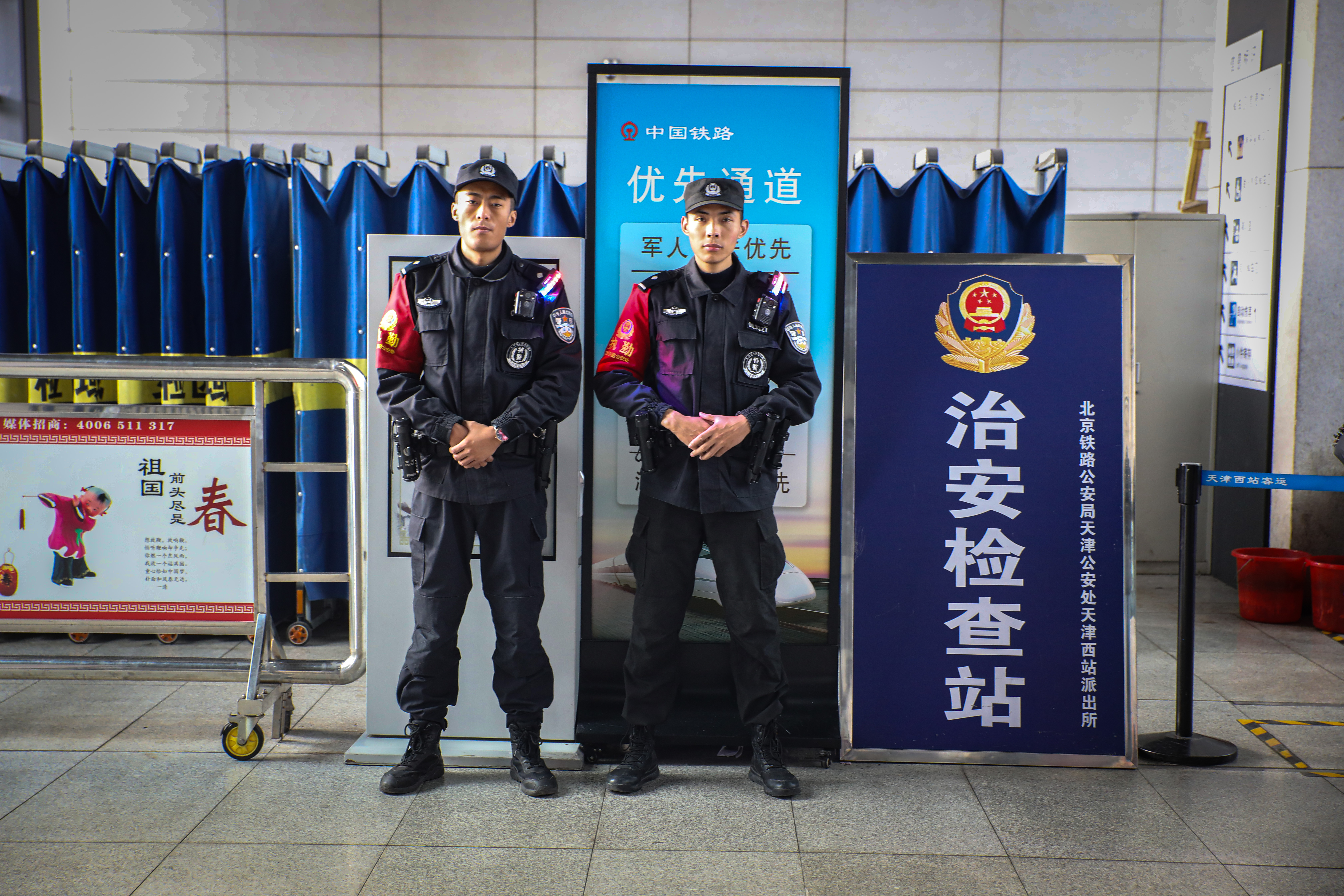 洛桑單巴和旺杰在車站巡邏。潘振東 攝
