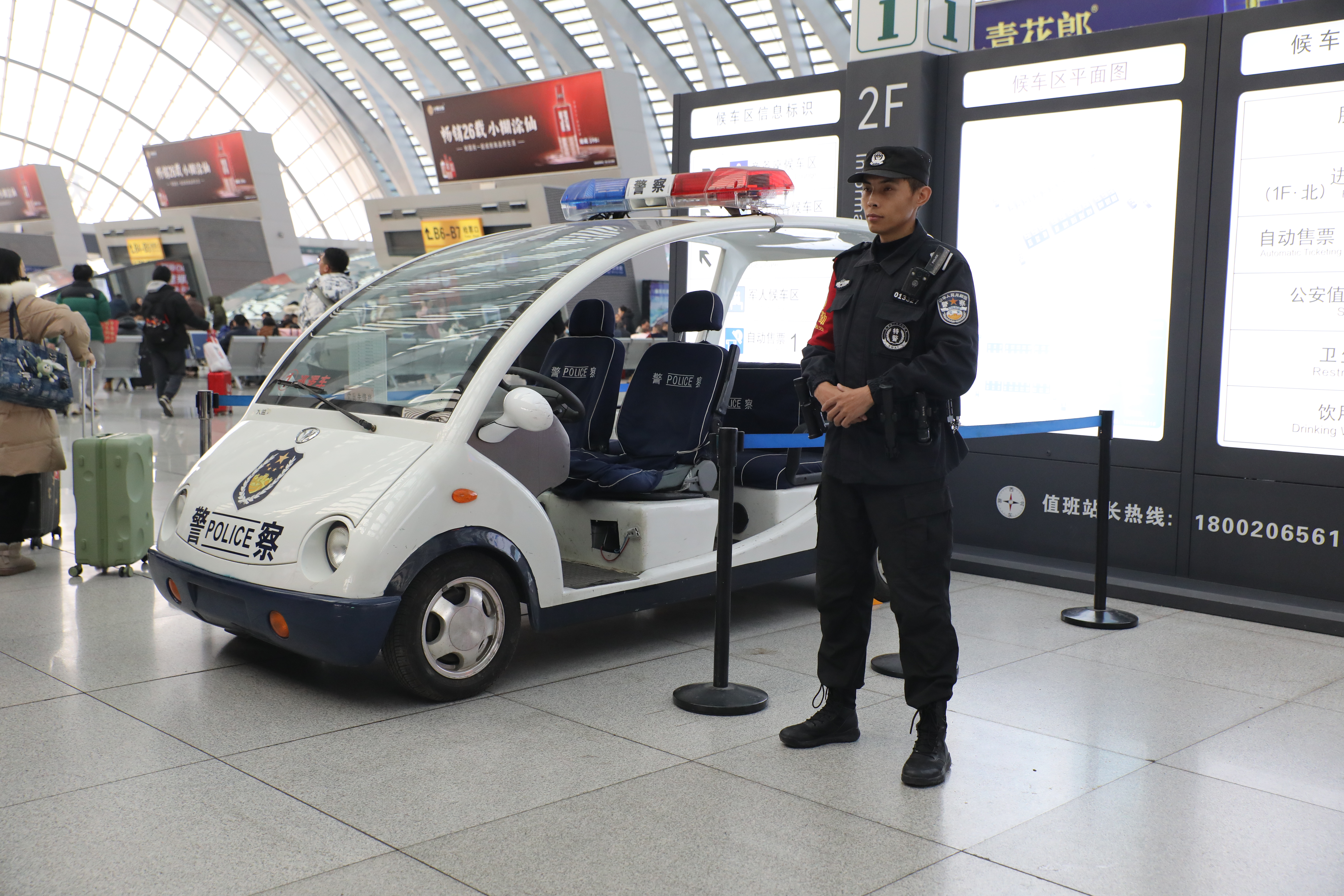 晨曦初露,大街小巷還在沉睡。雖已立春,寒意甚濃。燈火通明的進站口、候車室、售票廳里卻人潮涌動,旅客們紛紛踏上歸家的路途。候車廳內(nèi),旺杰和洛桑單巴正在巡邏執(zhí)勤,一排閃爍的肩燈伴著鏗鏘的腳步穿過鼎沸的人群。那一縷康巴紅,是他們一往無前的力量源泉;那一抹警察藍,是他們恪盡職守的不竭動力。