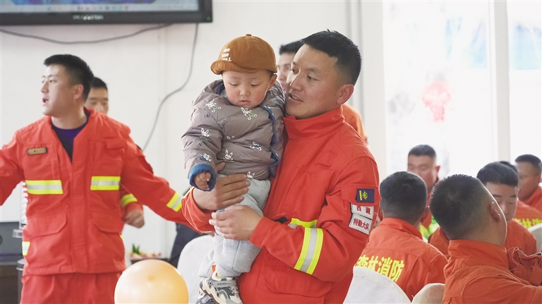 “沒(méi)事!我?guī)Ш⒆觼?lái)看你?!边@是仁增多吉愛(ài)人在電話中的話語(yǔ)。春節(jié)前夕,仁增多吉的愛(ài)人和兒子來(lái)到了專(zhuān)門(mén)為他們安排的公寓房里。房間里溫馨而舒適,配齊了水、電、氣等生活設(shè)施,還購(gòu)買(mǎi)了米面油等生活必需品?!半m然結(jié)婚4年了,這還是第一次在你們單位過(guò)年,大隊(duì)想我們所想,讓我們一家人團(tuán)聚,我們也深深地感受到了大隊(duì)對(duì)一線消防員的關(guān)懷?!比试龆嗉膼?ài)人說(shuō)道。