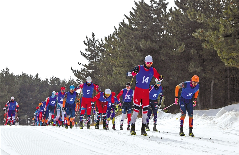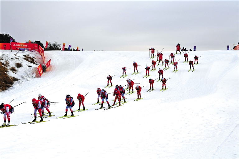 2月1日,第十四屆全國冬季運動會滑雪登山項目公開組混合接力比賽在內(nèi)蒙古扎蘭屯市金龍山滑雪場舉行。