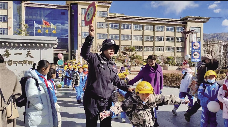 站在學(xué)校門口,等待孩子的家長央金感觸頗深,她告訴記者,每次開學(xué)前、開學(xué)時、開學(xué)后,都能看到民警們忙碌的身影。為學(xué)校家長提供幫助,為學(xué)生消除安全隱患,營造了安全、和諧、文明的校園環(huán)境,十分感謝他們。“今天報到啦,我們看到警察叔叔和阿姨就覺得很安心、很開心?!睂嶒炐W(xué)3年級10班學(xué)生白瑪娜薩說。