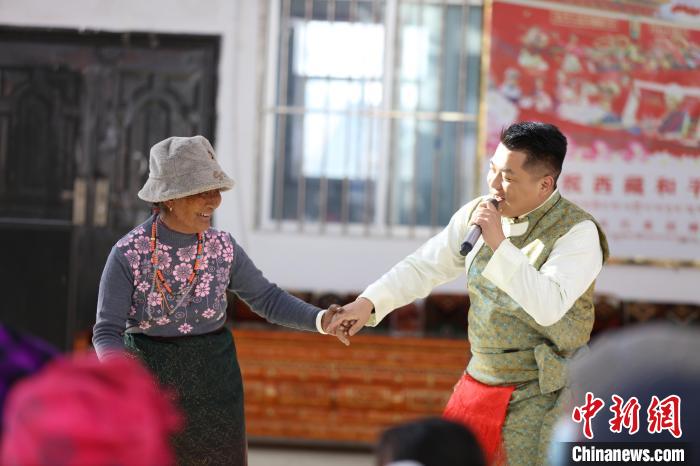 圖為演出中,西藏出入境邊防檢查總站文藝骨干與阿里地區(qū)扎西崗鄉(xiāng)群眾互動(dòng)?!『『?攝