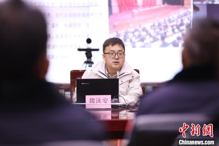 圖為四川大學(xué)馬克思主義學(xué)院魏泳安副教授通過(guò)視頻會(huì)議系統(tǒng)向阿里邊境管理支隊(duì)全體民警講授理論知識(shí)?!『『?攝