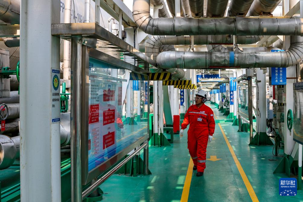 強(qiáng)巴在秦皇島32-6油田“渤海世紀(jì)號(hào)”(FPSO)16萬(wàn)噸級(jí)浮式生產(chǎn)儲(chǔ)油裝置上(3月7日攝)。新華社記者 姜帆 攝