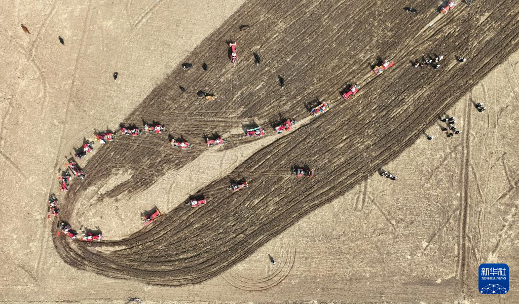 這是3月16日拍攝的西藏拉薩市林周縣強嘎鄉(xiāng)春耕儀式現(xiàn)場(無人機照片)。新華社記者 晉美多吉 攝