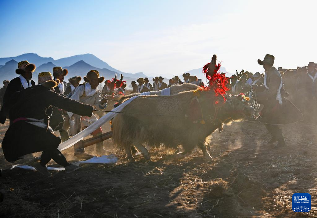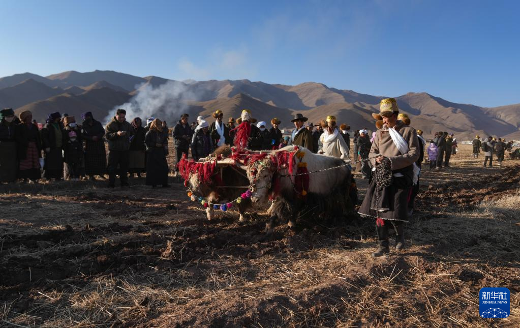 這是3月16日拍攝的西藏山南市瓊結(jié)縣加麻鄉(xiāng)加麻村的春耕儀式現(xiàn)場。新華社記者 旦增尼瑪曲珠 攝