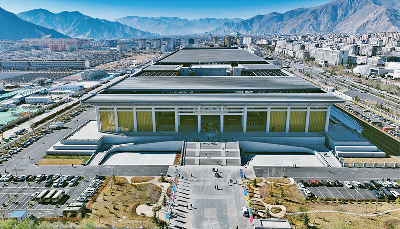 2023年12月15日,西藏大劇院開臺演出活動舉行,西藏文化新地標(biāo)西藏大劇院正式啟用。圖為空中俯瞰西藏大劇院(無人機(jī)照片)。 新華社記者 晉美多吉/攝