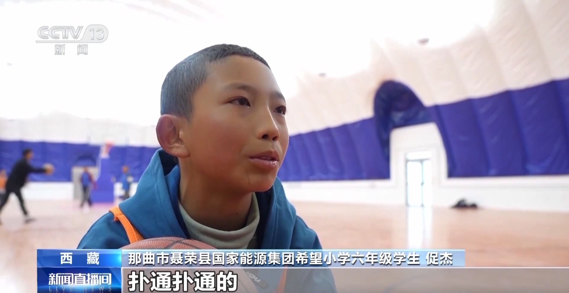正在新球館進(jìn)行籃球訓(xùn)練的促杰,是聶榮縣國家能源集團(tuán)希望小學(xué)六年級(jí)學(xué)生。他的家在離縣城18公里的色慶鄉(xiāng),平常住在學(xué)校。從三年級(jí)開始,促杰開始喜歡上籃球。然而,這里高寒缺氧,晝夜溫差大,全年日均最高溫僅7攝氏度,孩子們無法進(jìn)行長時(shí)間的訓(xùn)練。此前學(xué)校僅有的露天球場,更是常常受天氣影響,無法使用。