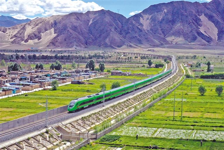 當前,全區(qū)公路通車總里程達到12.14萬公里,鐵路通車里程1359公里,國際國內航線169條……西藏交通從無到有、從通達到通暢、從行程到旅程,從牛運馬馱的原始交通發(fā)展到公路、航空、鐵路的綜合立體現(xiàn)代交通運輸體系?!皟陕贰本裨谛聲r代更加發(fā)揚光大、凝聚人心!