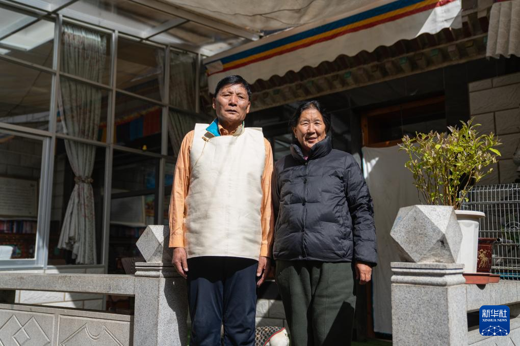 2024年3月28日 普次仁和妻子尼瑪倉姆合影(3月23日攝)。新華社記者 丁汀 攝
