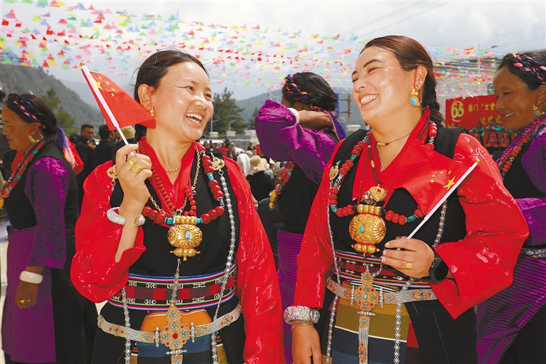 近日,昌都市各族群眾通過形式多樣的活動(dòng)紀(jì)念西藏百萬農(nóng)奴解放65周年,表達(dá)對黨的熱愛、對祖國的禮贊。28日上午,昌都市黨政軍警民及各界代表、卡若區(qū)人大代表、政協(xié)委員、干部群眾代表、學(xué)生、僧尼等600余人,身著盛裝歡聚昌都市解放廣場,參與升國旗·唱國歌儀式,共同紀(jì)念西藏百萬農(nóng)奴解放65周年。
