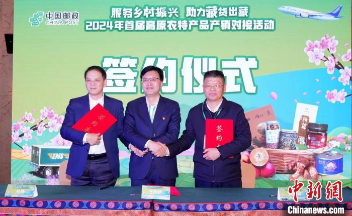圖為林芝市人民政府副市長(zhǎng)劉春祥(圖右)、中郵(安徽)網(wǎng)絡(luò)技術(shù)有限公司總經(jīng)理杜楊(圖左)與中國(guó)郵政集團(tuán)有限公司西藏自治區(qū)分公司黨委書(shū)記、總經(jīng)理王樹(shù)橋簽約后合影留念。中國(guó)郵政集團(tuán)有限公司林芝市分公司供圖。