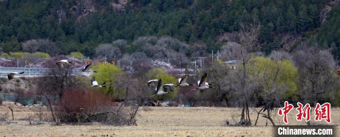 3月30日,在西藏林芝市巴宜區(qū)更章門巴民族鄉(xiāng)境內(nèi),黑頸鶴在村莊里、盛開的桃花前、雪山下翩翩起舞,形成一幅絕美的自然畫卷。黑頸鶴,被譽為“鳥類大熊貓”,是國家一級保護野生動物,也是世界上唯一在高原地區(qū)生長和繁殖的鶴類。近年來,西藏不斷加大黑頸鶴生存環(huán)境保護力度。據(jù)2022年冬季越冬黑頸鶴種群數(shù)量調(diào)查顯示,在西藏越冬的黑頸鶴種群數(shù)量達11175只,種群數(shù)量持續(xù)增長,并在西藏全區(qū)均有分布,其瀕危等級也從“易?!苯禐椤敖!?。在林芝,黑頸鶴在桃花與雪山間自由翱翔,展現(xiàn)了人與自然和諧共處的美好場景。
