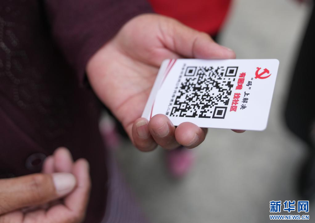 4月2日,小區(qū)居民手拿網(wǎng)格便民二維碼。(新華社記者 晉美多吉 攝)