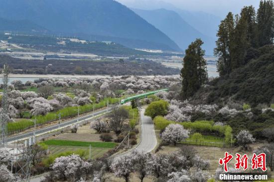 3月下旬至4月,西藏拉薩至林芝鐵路(拉林鐵路)沿線綿延的野生桃花林盛開,復(fù)興號(hào)動(dòng)車組穿行在桃花海間,成為拉林鐵路春天最美的點(diǎn)綴。圖為穿梭在桃花林中的拉林鐵路高原復(fù)興號(hào)。