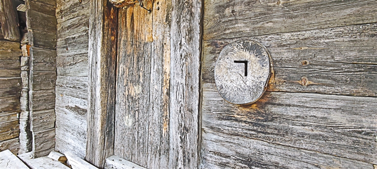 在村民的幫助下,我們依著鎖孔的形狀,將鑰匙平放進(jìn)去,沉進(jìn)鎖芯的孔道中,憑感覺(jué)挑起用小木塊做成的栓子,把沉重的木鎖從門(mén)邊的鎖洞中移除。接著,再用手伸進(jìn)鎖洞中摸索著移動(dòng)房門(mén)后的木栓,即內(nèi)鎖,多次嘗試后終于打開(kāi)了一間糧倉(cāng)!