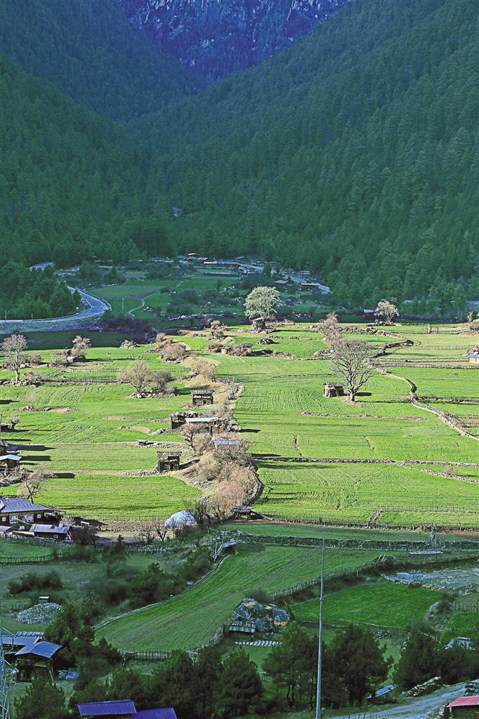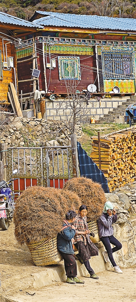 雖然日卡村與外界相隔重重深山峽谷,但人口少、資源多,既有農(nóng)田種植的小麥青稞、油菜等,也有牧場(chǎng)放養(yǎng)的成群牛羊,還有大片樹(shù)林可采集松茸、羊肚菌、天麻等,連松針都被勤勞的村民收集漚肥,村里成群放養(yǎng)的藏香豬也在證明這里庭院經(jīng)濟(jì)的豐富。