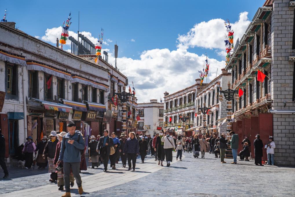 八廓街上游人如織。新華社記者 丁增尼達 攝
