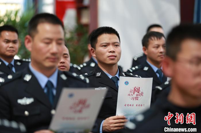 圖為吉隆出入境邊防檢查站參與“古道雄關(guān) 書(shū)香國(guó)門(mén)”主題讀書(shū)分享會(huì)的移民管理警察正在認(rèn)真聆聽(tīng)。肖富貴 攝