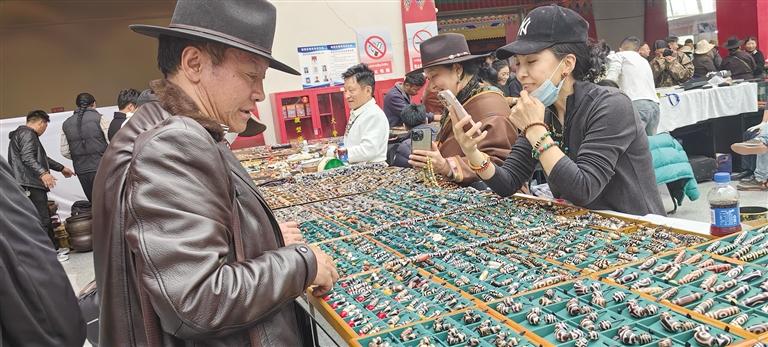 記者在展廳看到,參展商家攤位分布有序,前來購(gòu)買各種珠寶、藝術(shù)品的顧客絡(luò)繹不絕?;顒?dòng)現(xiàn)場(chǎng),匯聚了來自全國(guó)各地的珠寶商、藝術(shù)家、收藏家及投資者。博覽會(huì)期間,主辦方舉辦了珠寶、藝術(shù)品鑒定評(píng)估等商貿(mào)活動(dòng),以及珠寶藝術(shù)品講座、研討會(huì)等文化交流活動(dòng),為與會(huì)者提供了一個(gè)全面了解西藏珠寶及藝術(shù)品的機(jī)會(huì),同時(shí)也為珠寶商、藝術(shù)家和投資者搭建了一個(gè)交流與合作的平臺(tái)。文/圖 記者 張雪芳