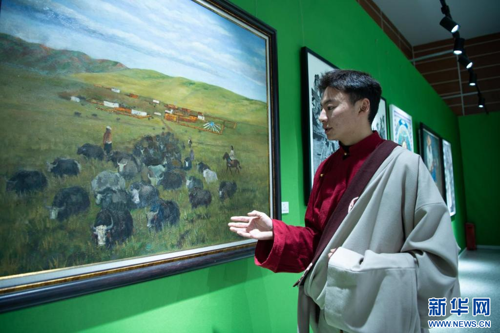 4月28日,第五屆民族團結書法、美術、攝影、微視頻大賽作品展現場。新華網 旦增努布 攝