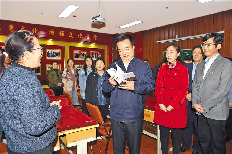 調(diào)研中,王君正指出,師范院校承擔(dān)著為中小學(xué)培養(yǎng)師資的重任,責(zé)任艱巨、使命光榮。要堅(jiān)持正確辦學(xué)方向,自覺(jué)用習(xí)近平新時(shí)代中國(guó)特色社會(huì)主義思想指導(dǎo)學(xué)校建設(shè)辦學(xué)實(shí)踐,堅(jiān)持不懈用馬克思主義中國(guó)化最新成果武裝廣大師生頭腦。堅(jiān)持立德樹(shù)人根本任務(wù),圍繞為黨育人、為國(guó)育才,遵循教育規(guī)律和人才成長(zhǎng)規(guī)律,努力培養(yǎng)德智體美勞全面發(fā)展的社會(huì)主義建設(shè)者和接班人。進(jìn)一步加強(qiáng)師范教育體系建設(shè),聚焦經(jīng)濟(jì)社會(huì)發(fā)展新任務(wù),積極推進(jìn)師范教育教學(xué)改革,突出需求導(dǎo)向,促進(jìn)教育鏈與人才鏈、產(chǎn)業(yè)鏈、創(chuàng)新鏈深度融合,提高辦學(xué)質(zhì)量和辦學(xué)效益。高度重視教師隊(duì)伍建設(shè),把師德師風(fēng)建設(shè)擺在首要位置,提高教師培養(yǎng)培訓(xùn)質(zhì)量,培養(yǎng)造就一支師德高尚、業(yè)務(wù)精湛、結(jié)構(gòu)合理的高素質(zhì)專業(yè)化教師隊(duì)伍。