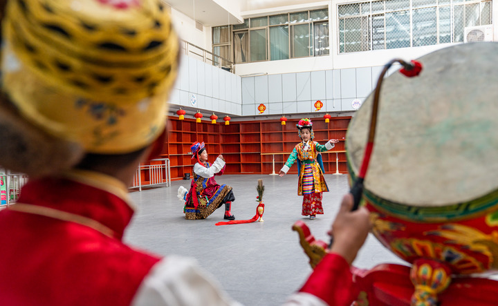 藏戲小演員排練劇目《蘇吉尼瑪》。新華社記者 丁增尼達 攝