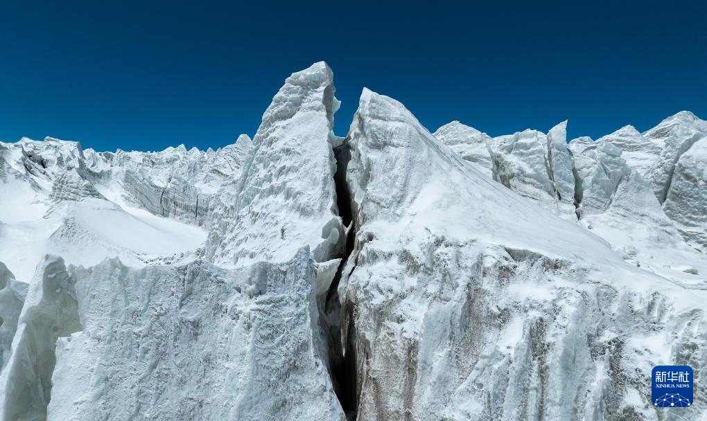 藏色崗日冰川冰塔林(無人機照片,5月11日攝)。新華社記者 丁增尼達 攝
