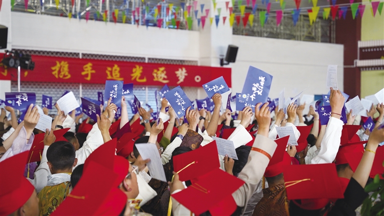 5月29日下午,拉薩市第四高級(jí)中學(xué)舉行2024屆高三年級(jí)成人禮暨畢業(yè)典禮。750余名學(xué)生身著盛裝,頭戴紅色成人禮帽,與老師、家長(zhǎng)共赴這場(chǎng)華麗璀璨的青春盛宴。