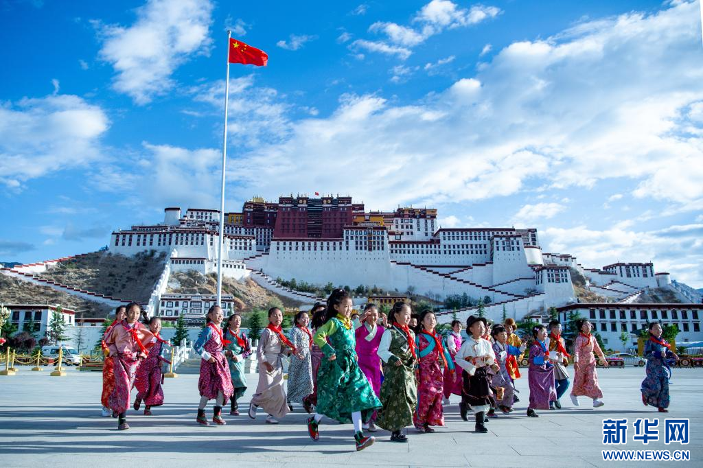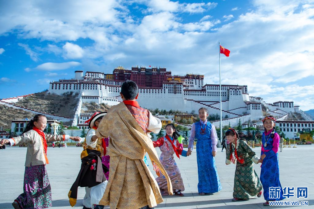 6月1日,小朋友們?cè)诓歼_(dá)拉宮廣場(chǎng)歡慶“六一”國(guó)際兒童節(jié)。新華網(wǎng) 旦增努布 攝