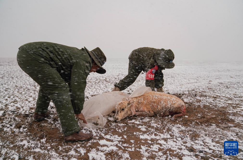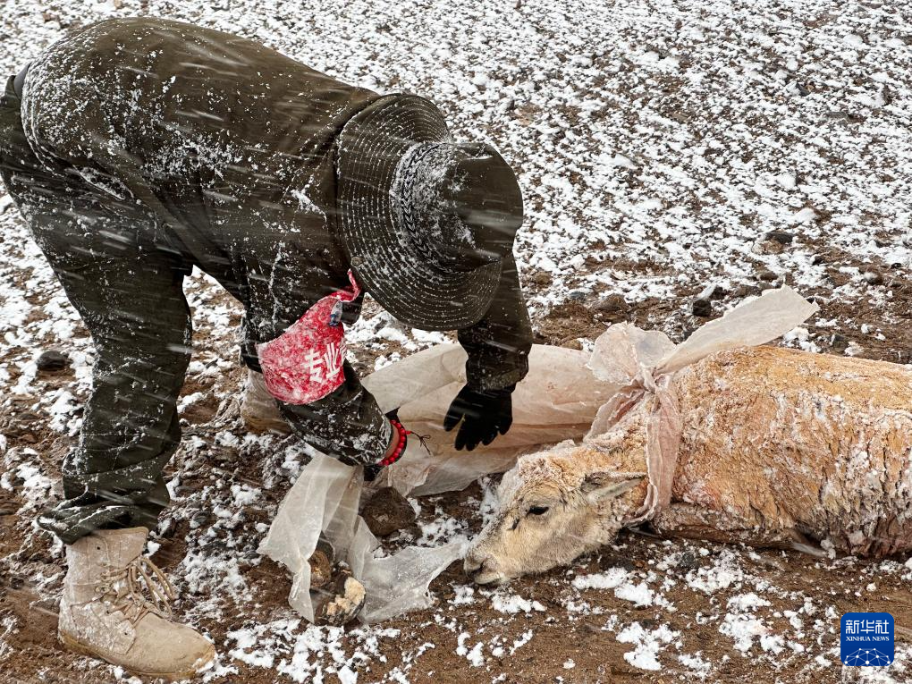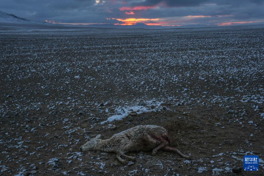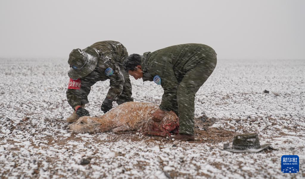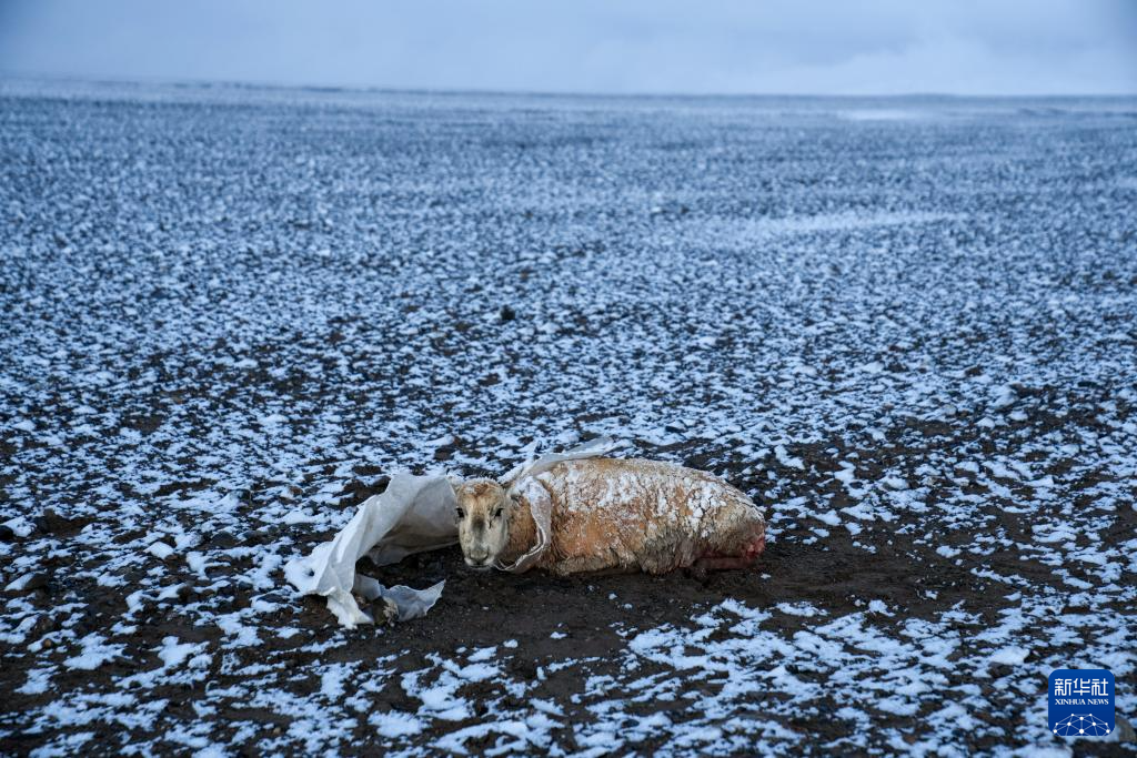 6月14日,西藏那曲市尼瑪縣境內(nèi)的羌塘國家級自然保護(hù)區(qū)“無人區(qū)”深處,在野生動物專業(yè)管護(hù)隊臨時宿營地附近,一只在藏羚羊遷徙路上等候已久的野狼撲向遷徙的藏羚羊群中一只懷孕的母羊,咬向肚子和脖子。激烈掙扎的藏羚羊掙脫后,靠著最后的一點力氣跑向野保隊營地,野狼不敢靠近營地而不得不離去。野保隊員看到在風(fēng)雪中掙扎的母羊,把它運(yùn)回營地進(jìn)行救助。但由于傷勢太重,肚皮被咬開且內(nèi)臟嚴(yán)重受損,野保隊員只能將母羊的肚皮縫上之后,按照慣例將受傷的母羊抬放在羌塘大草原。