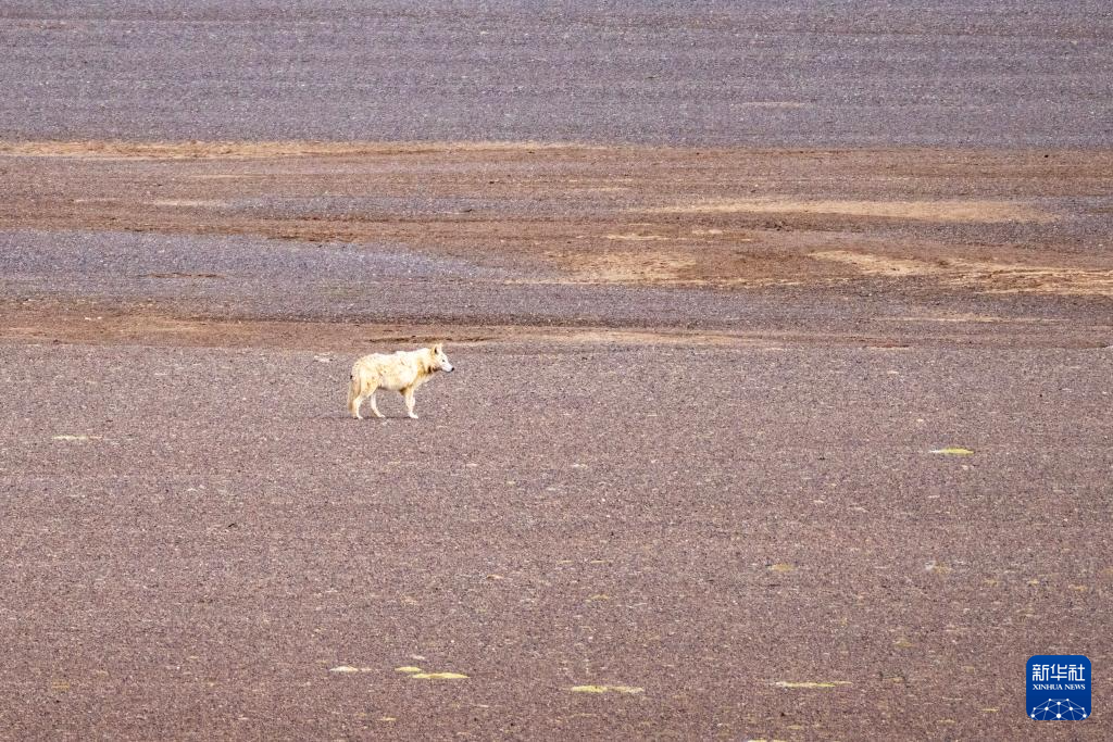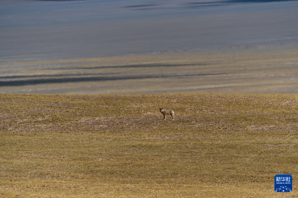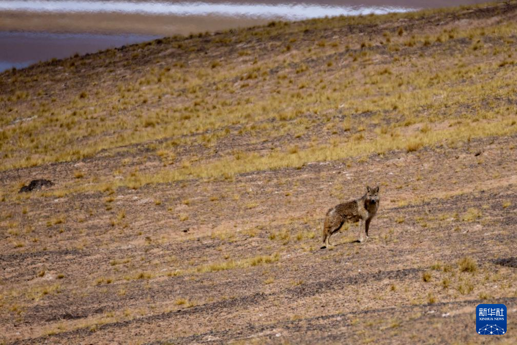 草原上伺機(jī)而動的野狼(6月13日攝)。新華社記者 旦增尼瑪曲珠 攝