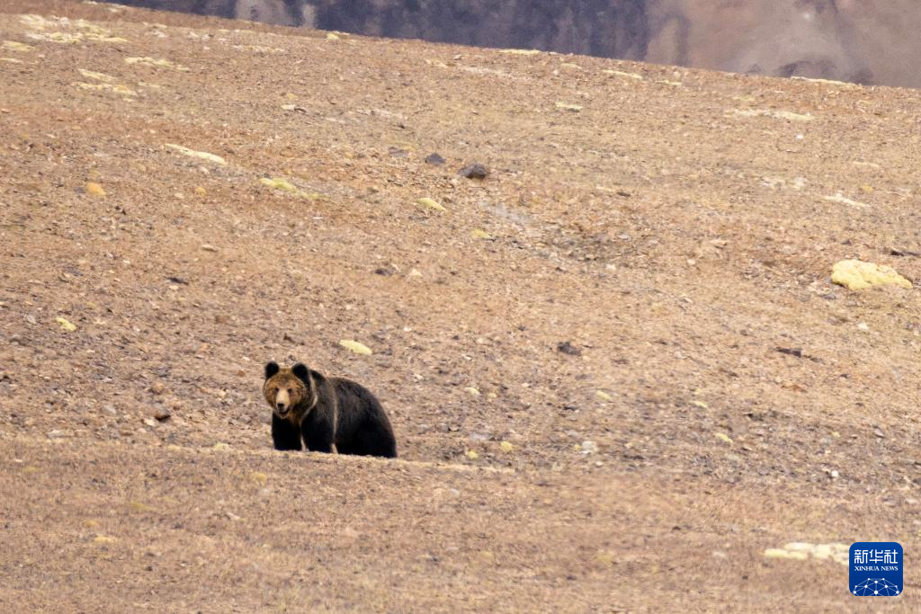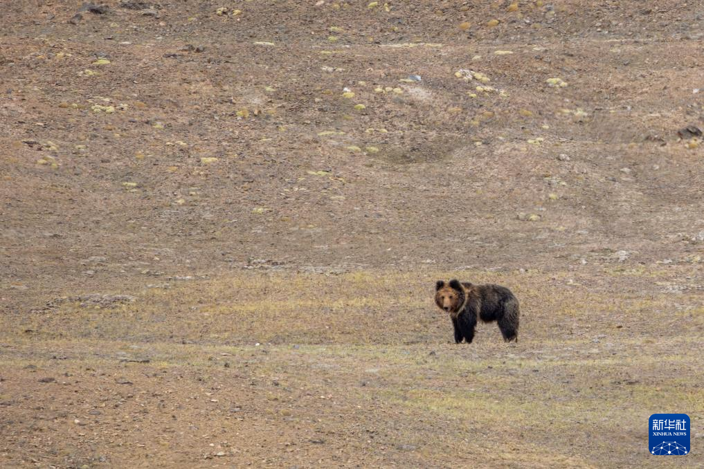 草原上伺機(jī)而動的棕熊(6月13日攝)。新華社記者 旦增尼瑪曲珠 攝