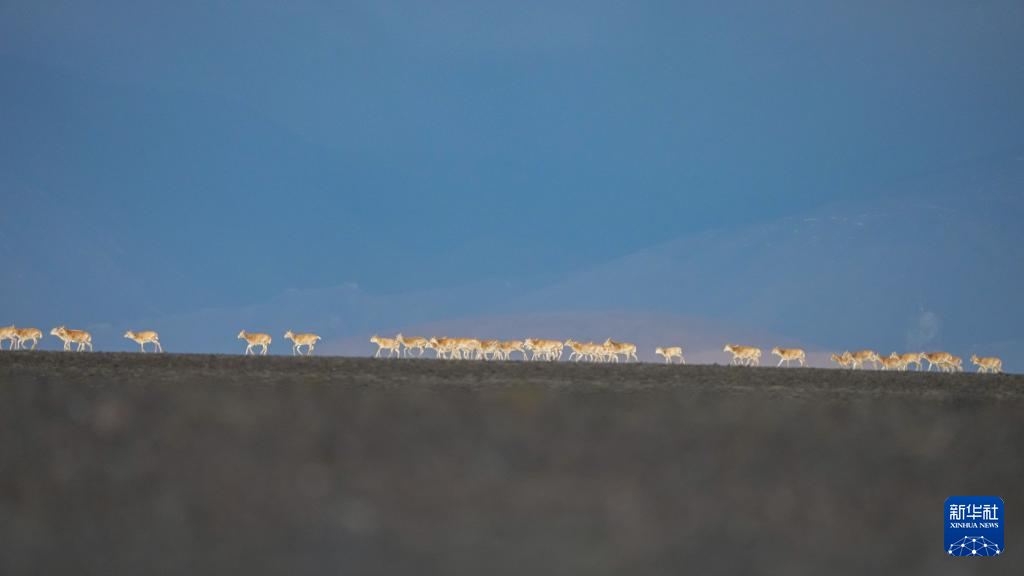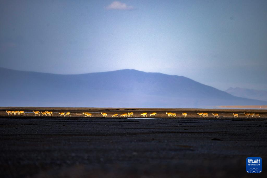 6月13日傍晚在羌塘國(guó)家級(jí)自然保護(hù)區(qū)拍攝的遷徙中的藏羚羊。新華社記者 費(fèi)茂華 攝