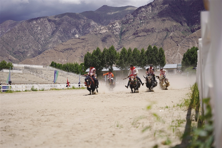 6月22日,由拉薩市人民政府主辦的拉薩首屆農(nóng)牧民運動會在拉薩開幕。本屆運動會為期5天,設(shè)競技項目、民族傳統(tǒng)與趣味項目兩個大類,涵蓋押加(大象拔河)、賽牦牛、藏棋、秀茲(藏式骰子)等19個比賽項目,共有來自拉薩市各縣(區(qū))、功能園區(qū)的11支代表隊500余名運動員參賽。