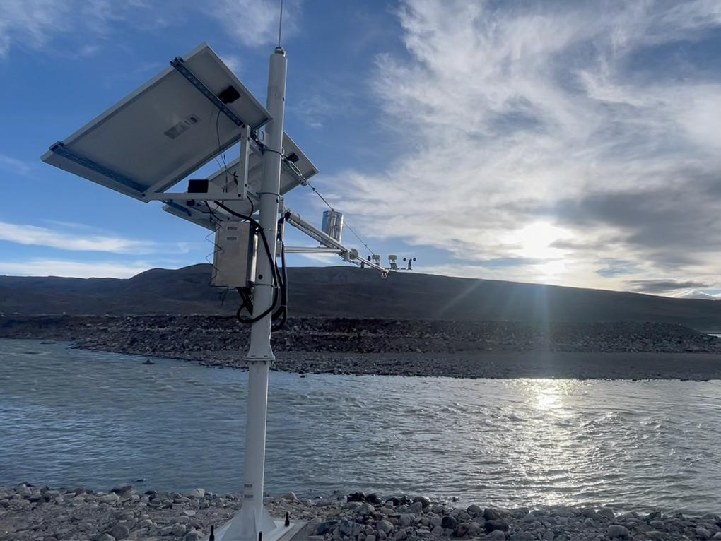 考察團隊在措嘉冰川安裝的新設備,以檢測冰川融水的水位和所在地區(qū)的氣象條件(6月23日攝)。新華社記者 邱星翔 攝