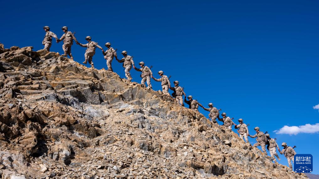 西藏阿里軍分區(qū)普爾楚邊防連秋迪儉革拉哨所官兵在海拔5100米的高原執(zhí)勤站哨(6月29日攝)。新華社發(fā)(戴學武 攝)