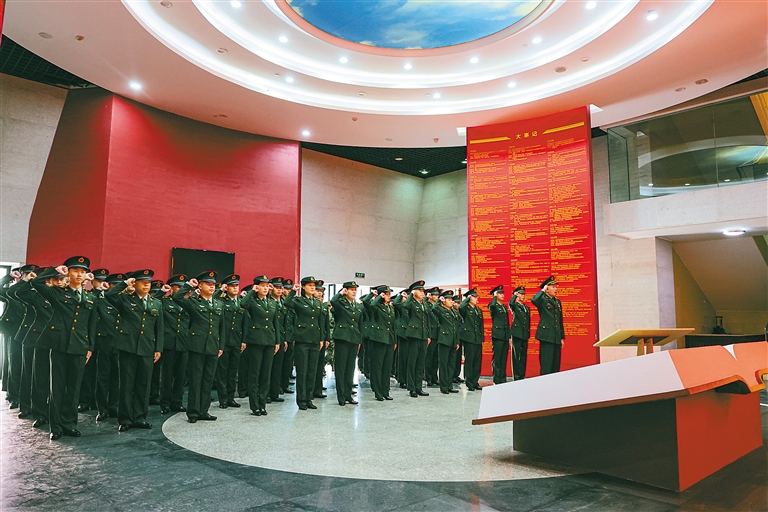 圖為拉薩警備區(qū)某團(tuán)組織黨員參觀(guān)西藏軍區(qū)軍史陳列館,重溫入黨誓詞。記者 唐斌 通訊員 何琪 攝