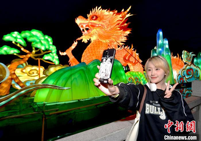 7月1日晚,布達拉宮腳下的宗角祿康公園“點亮拉薩—秦淮燈會”亮燈。燈會設17個點位、50個燈組,將持續(xù)至9月30日。圖為市民央金在燈會上拍照留念。中新社記者 李林 攝