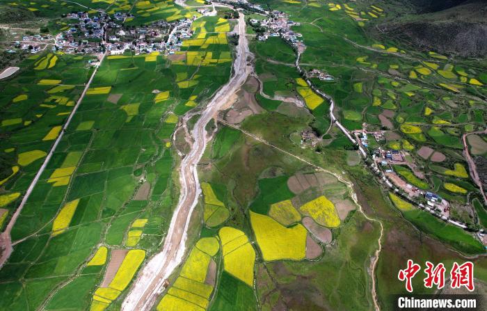 圖為7月10日,拉薩市墨竹工卡縣油菜花盛放。(無人機照片)中新社記者 李林 攝