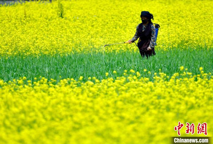 圖為7月10日,拉薩市墨竹工卡縣油菜花田中勞作的民眾。中新社記者 李林 攝