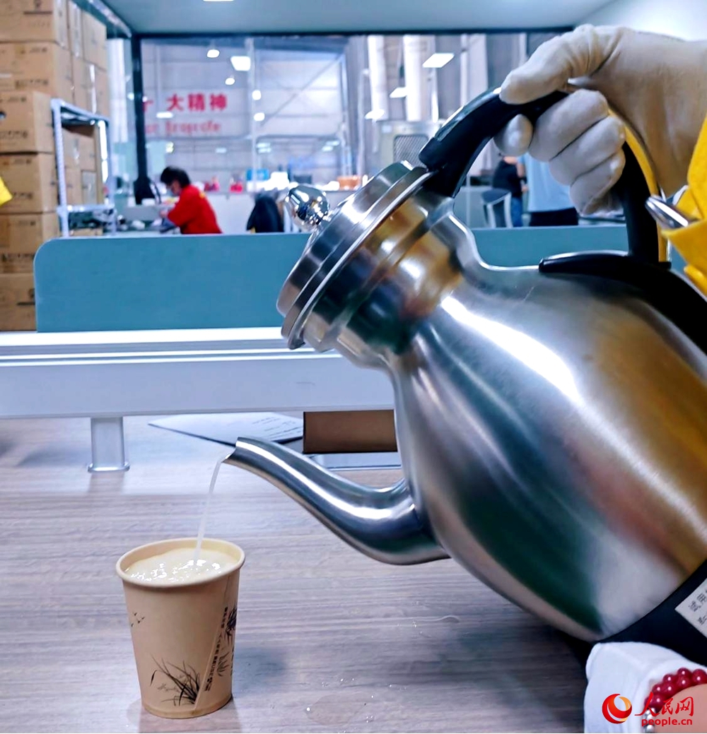 為讓大家信服,工作人員現(xiàn)場演示起來。加熱水、放茶和酥油,再加一點鹽調(diào)味,按下制作鍵,還沒等記者反應過來,就聽到“滴——”聲?!昂昧耍 惫ぷ魅藛T隨即提壺倒茶,讓大家品嘗。