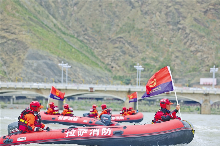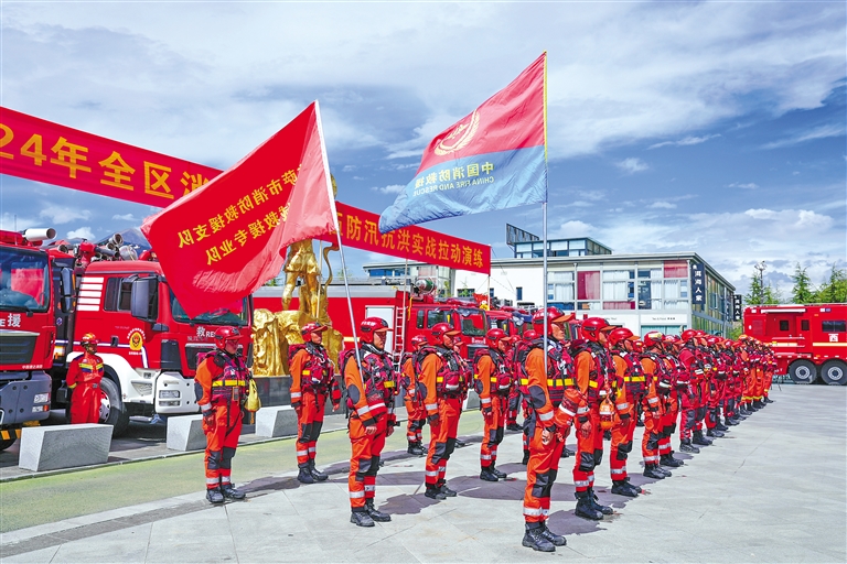 為深入貫徹落實習(xí)近平總書記關(guān)于防汛抗旱重要指示批示精神,近日,西藏自治區(qū)消防救援總隊按照自治區(qū)黨委、政府和國家消防救援局相關(guān)工作安排部署,聯(lián)合區(qū)水利廳、公安廳、交通運輸廳、自然資源廳、氣象局等聯(lián)勤聯(lián)動單位開展2024年全區(qū)消防救援隊伍防汛抗洪應(yīng)急救援實戰(zhàn)演練。
