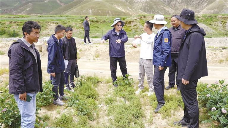 南木林縣數(shù)字農(nóng)業(yè)產(chǎn)業(yè)園內(nèi),山東省第八批援藏干部調(diào)研“艾瑪”土豆種薯擴(kuò)繁發(fā)展情況。