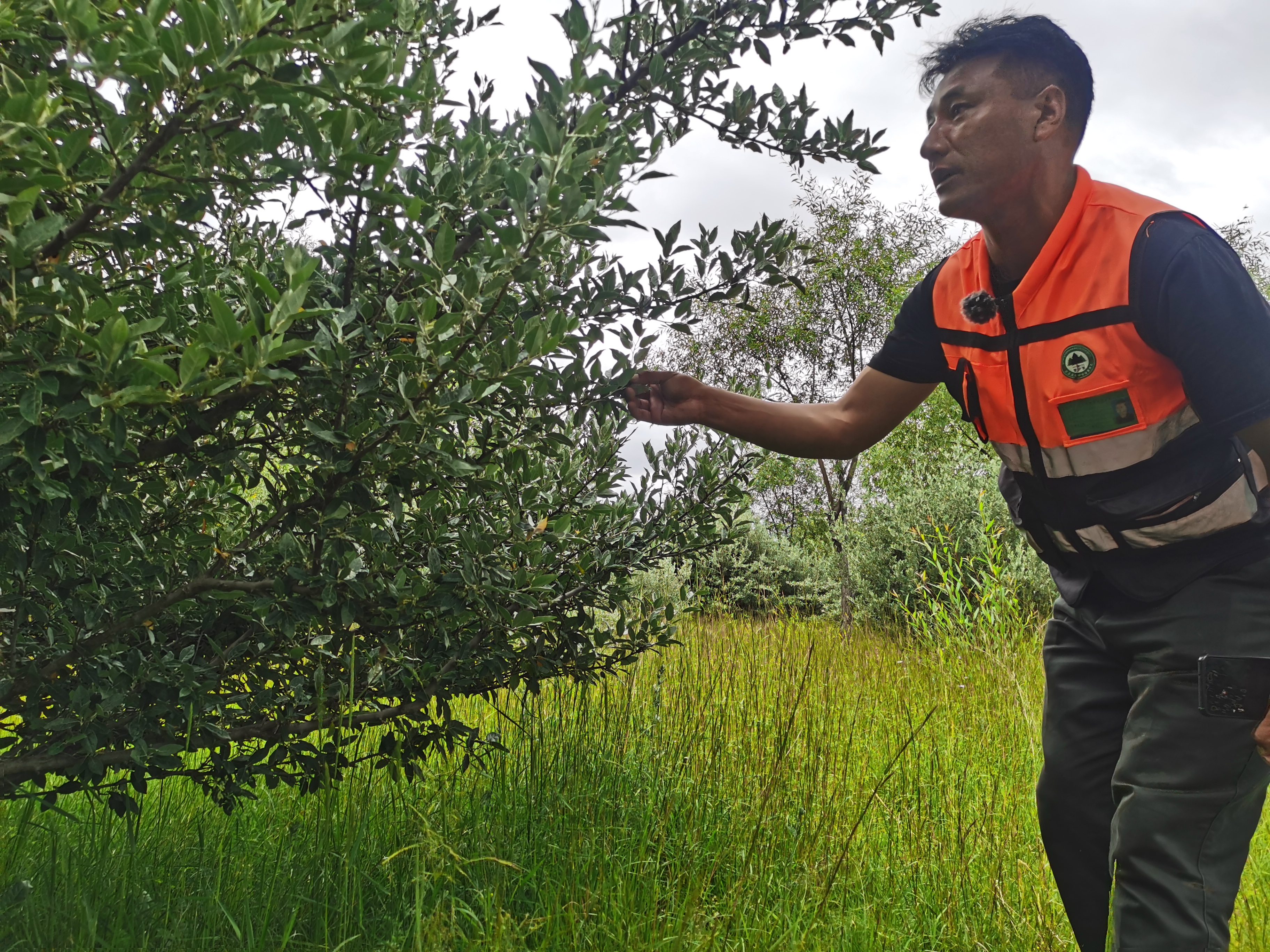 旺扎談到,他很喜歡管護(hù)員這份工作,一干就是18年。這里的一草一木他每天都要查看,有時(shí)能一眼看出哪些樹(shù)木遇到了什么樣的蟲(chóng)害問(wèn)題。一旦有蟲(chóng)害發(fā)生,他會(huì)馬上向上級(jí)主管部門(mén)匯報(bào),及時(shí)跟進(jìn)治療。為了更好做好濕地管護(hù)工作,每年旺扎還會(huì)參加3~4次培訓(xùn),學(xué)習(xí)如何分辨林草病蟲(chóng)害、如何防火等。如今,濕地生態(tài)越來(lái)越好,很多外地的游客慕名前來(lái)。每次看到他們專(zhuān)程來(lái)到這里欣賞美景,拍照打卡,他都會(huì)很開(kāi)心。在旺扎眼里,這兒一年中最美好的季節(jié)莫過(guò)于夏季,此時(shí)到處是綠綠的草、清清的水,還有各色各樣的野花競(jìng)相開(kāi)放。